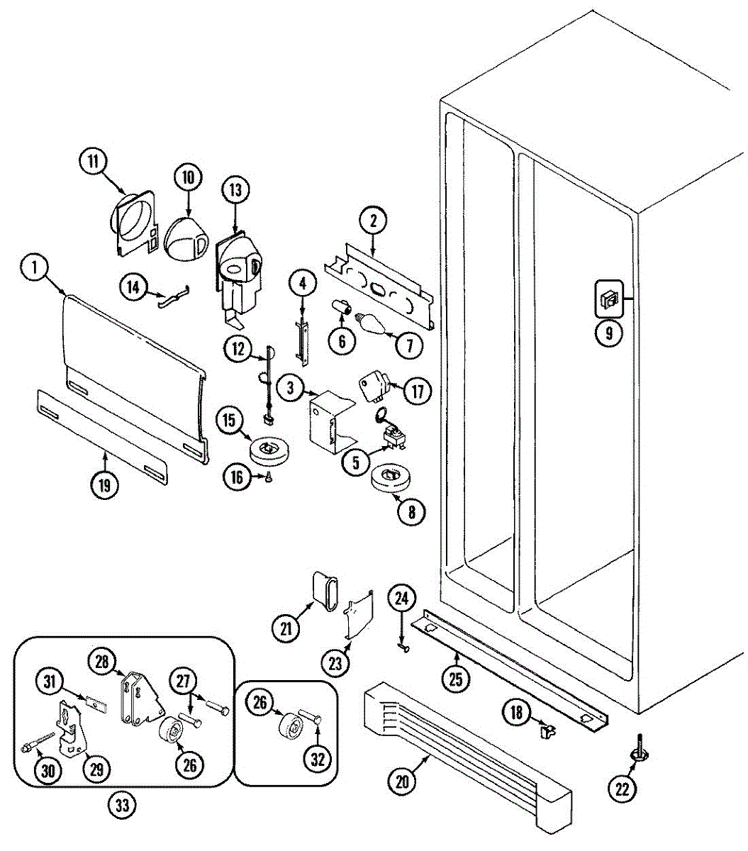 An adjustable leveler that supports and raises or lowers the appliance to help stabilize it on uneven floors. Restores proper alignment to reduce rocking, vibration, and door misalignment for improved performance and safety. What it does: