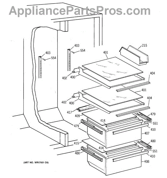 Parts for Ge CST20KABBAD: 04 - Fresh Food Shelves Parts