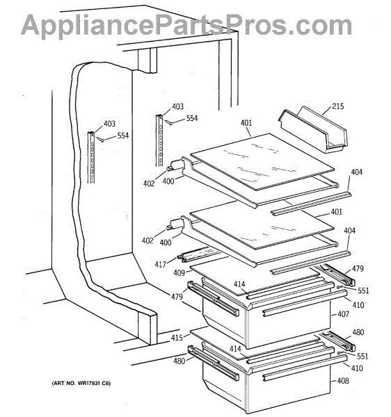 Parts for Ge CST20KABEAD: 04 - Fresh Food Shelves Parts