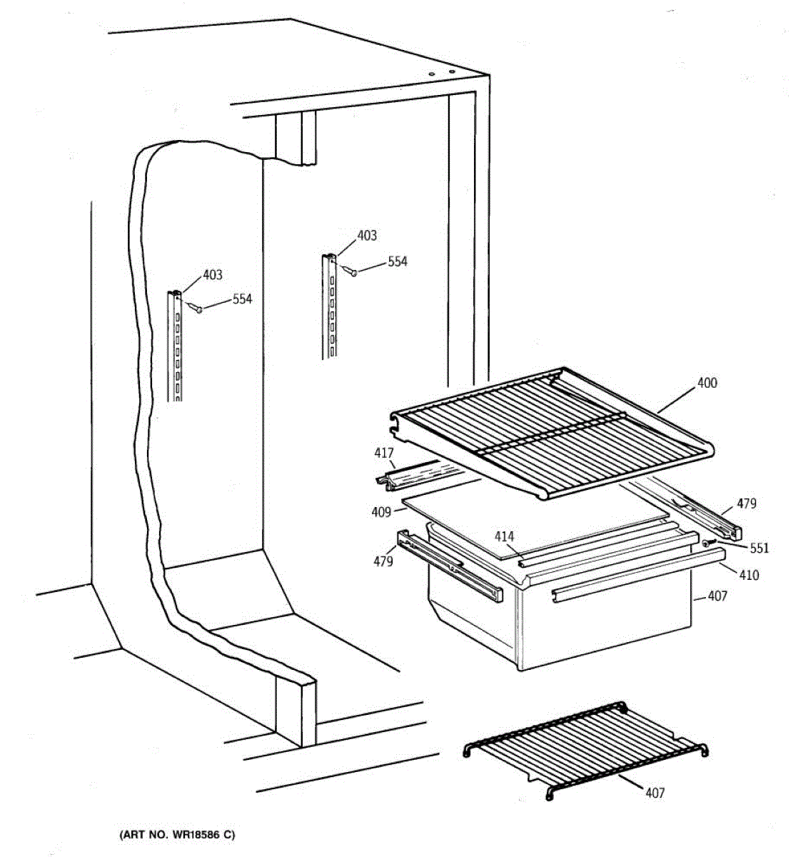 Parts for Ge CSX19LABBWH: 04 - Fresh Food Shelves Parts