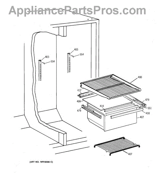 Parts for Ge CSX19LABCWH: 04 - Fresh Food Shelves Parts
