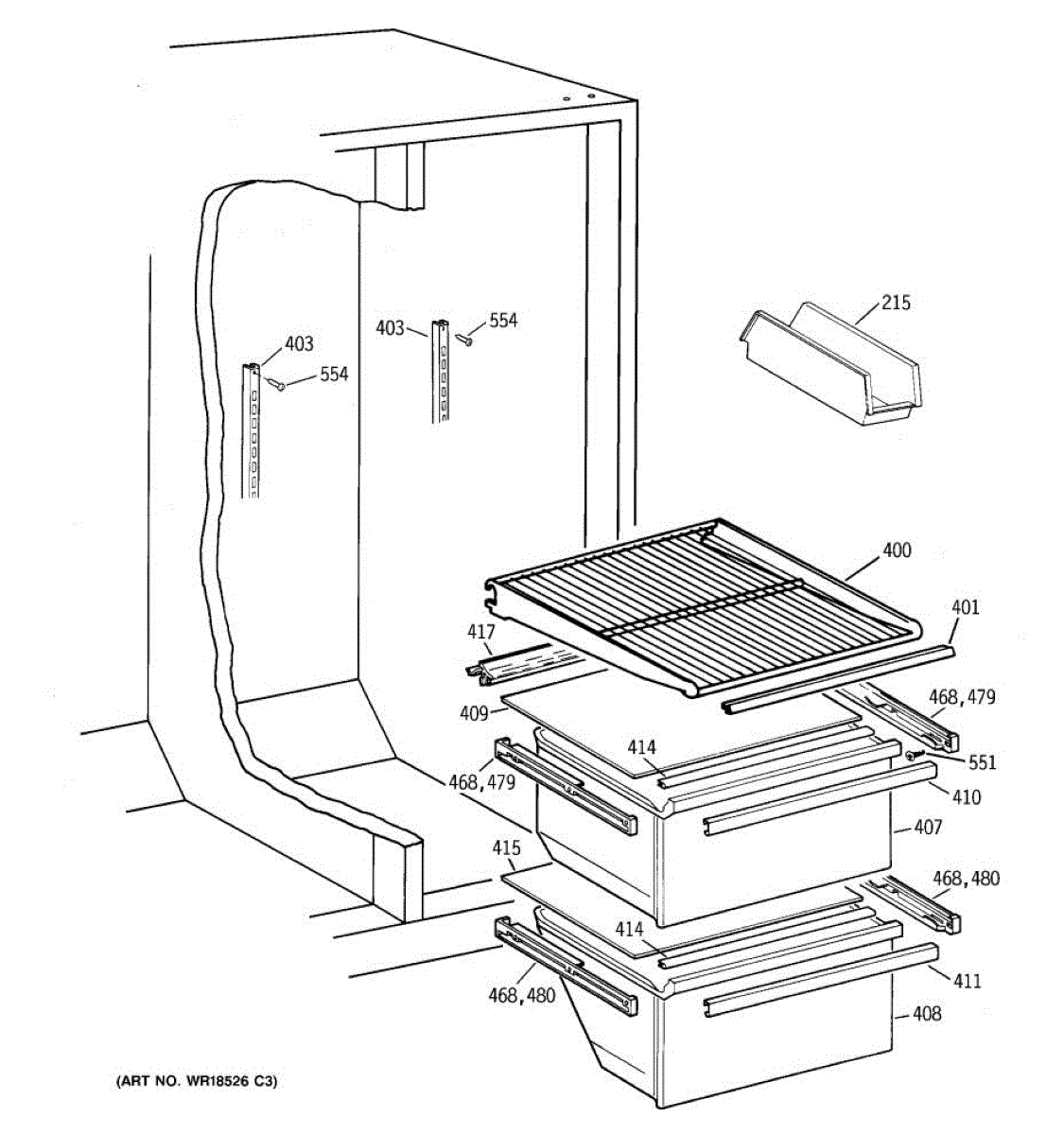This left-hand drawer slide assembly mounts inside the refrigerator's fresh food section. It supports the shelf/cover and guides the drawer on its track, restoring smooth operation and proper alignment when the original rail is cracked or worn.