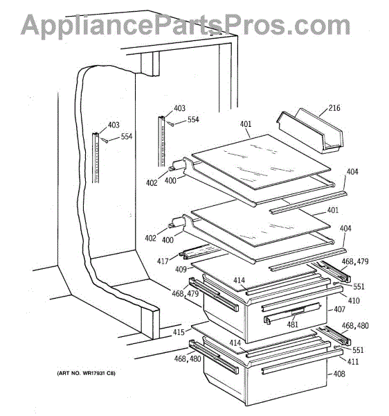 Parts for Ge CSX25GRBCWW: 04 - Fresh Food Shelves Parts