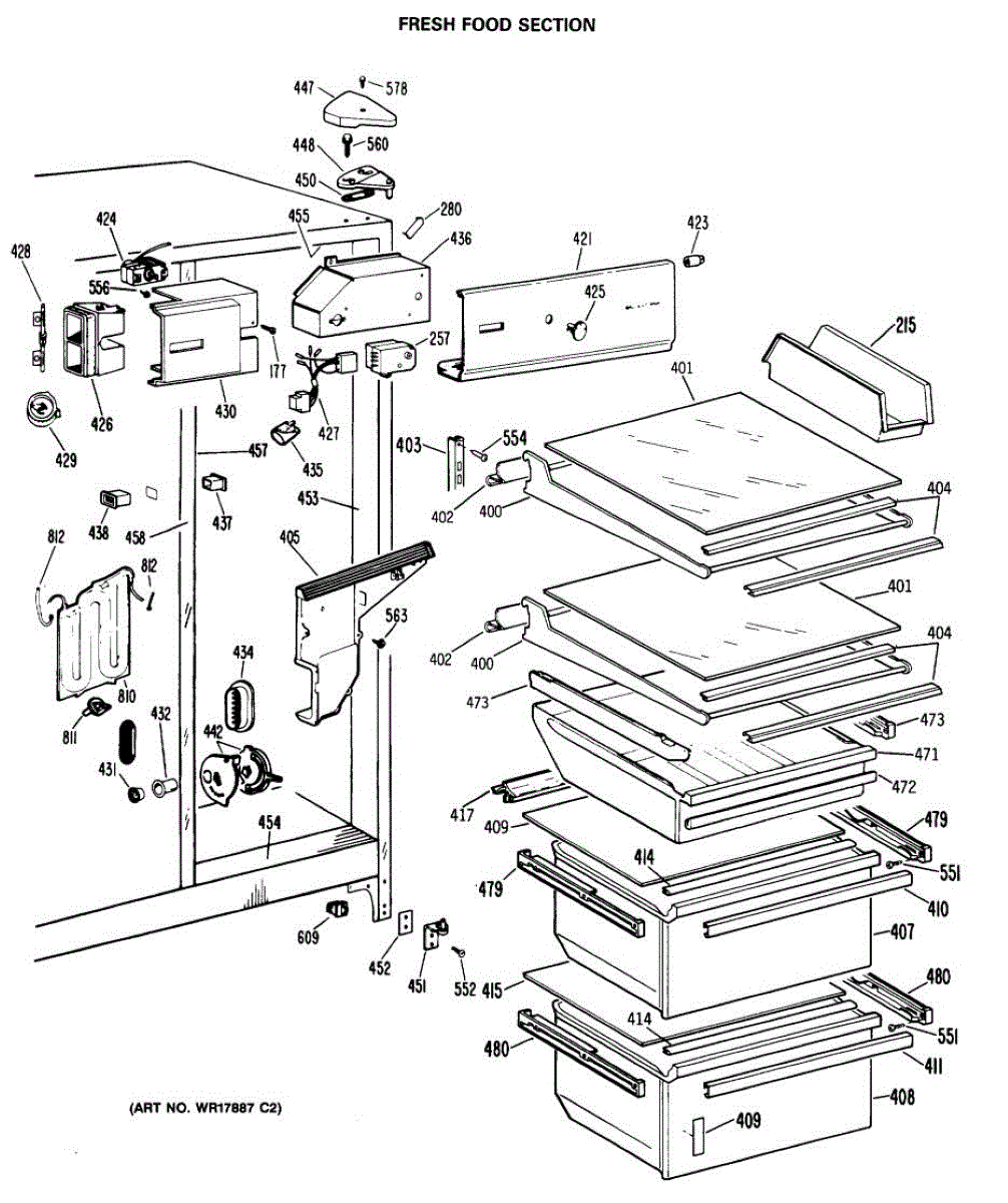 Parts for Ge CSX27DRAAD: 04 - Fresh Food Section Parts