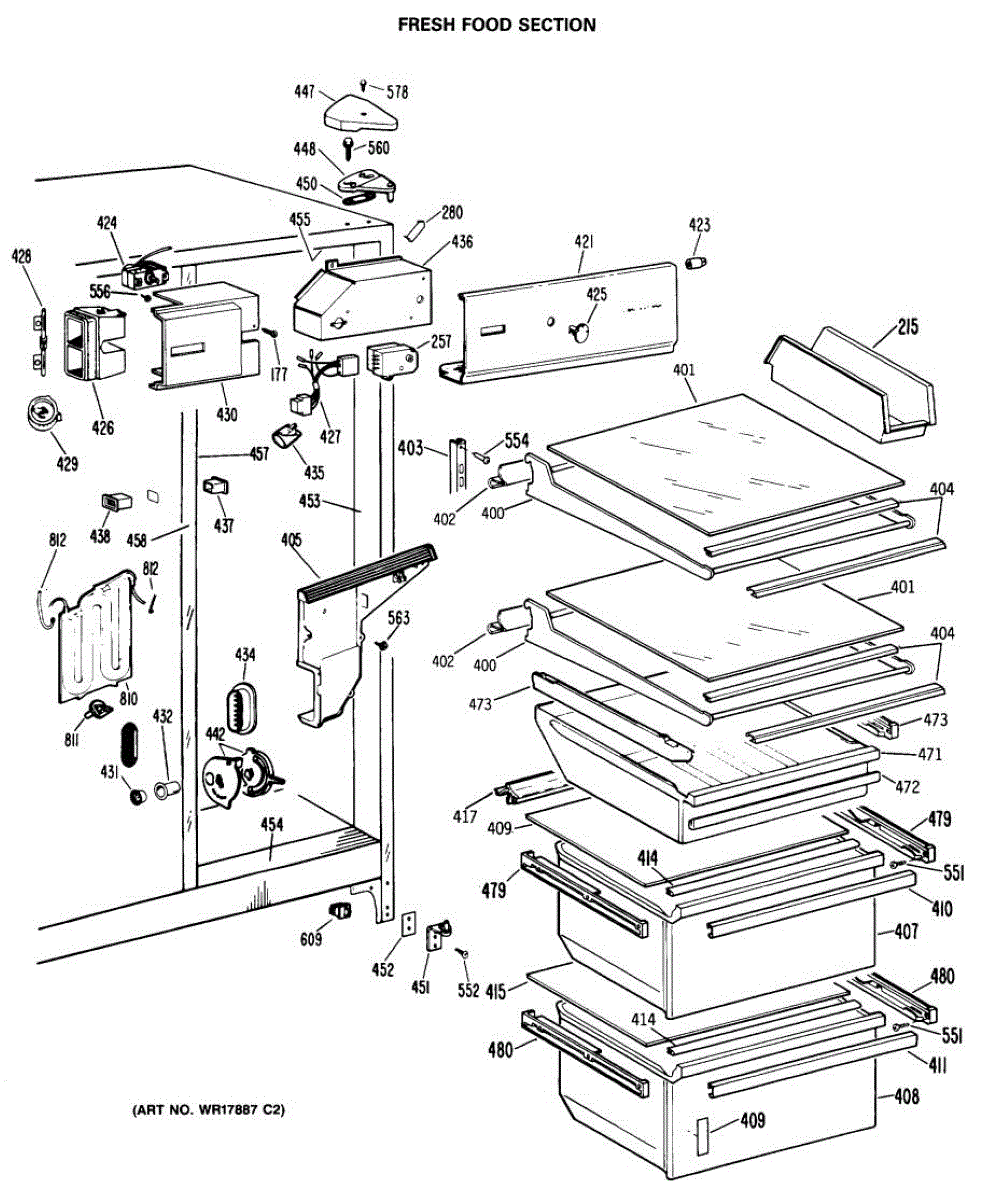 Parts for Ge CSX27HRBWH: 04 - Fresh Food Section Parts