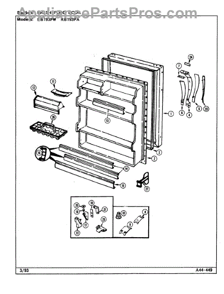 Parts for Magic Chef RB193PW: 04 - Fresh Food Door Parts