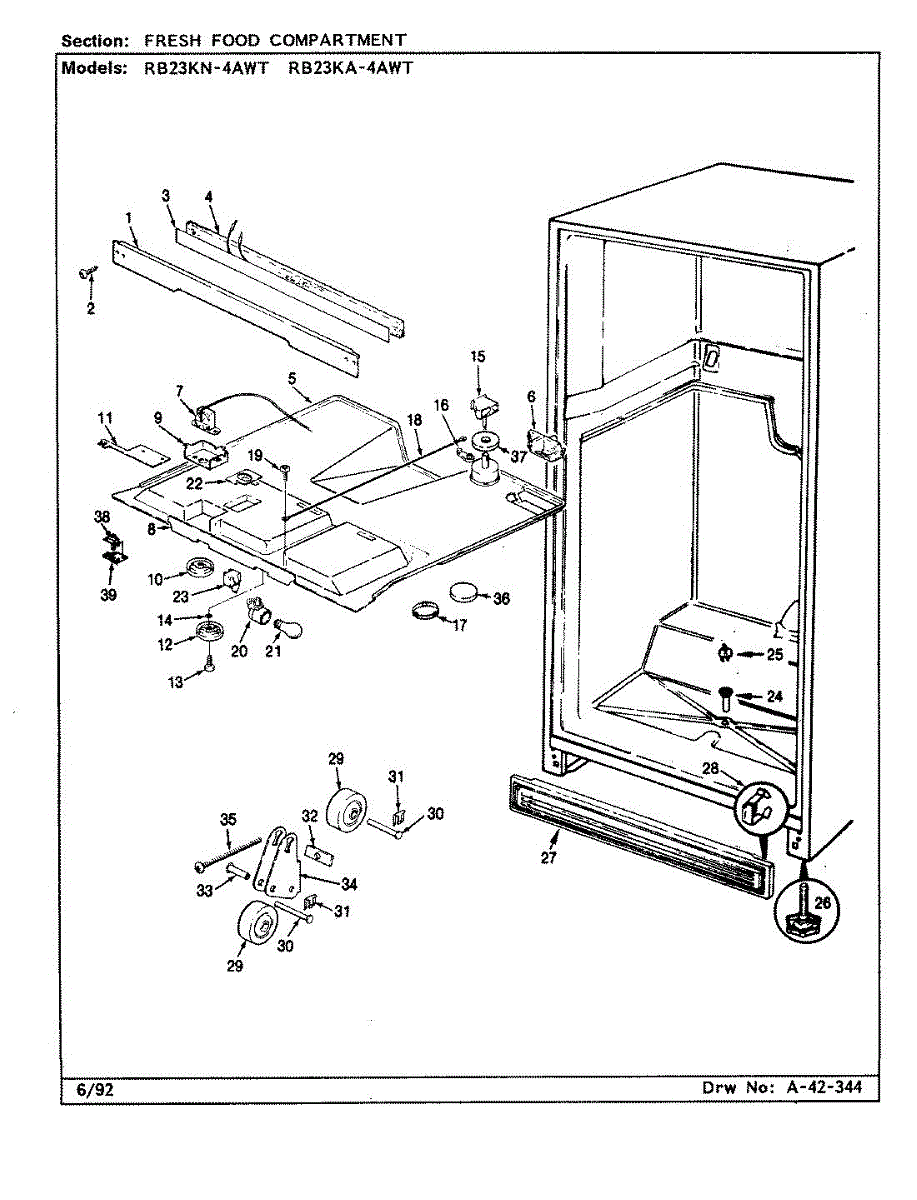 This factory screw secures appliance components to their mounting points. Replace missing, worn, or stripped hardware to restore a tight fit, proper alignment, and quieter operation across the affected assembly.