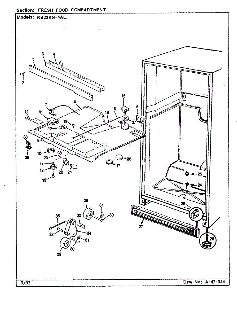 This factory screw secures appliance components to their mounting points. Replace missing, worn, or stripped hardware to restore a tight fit, proper alignment, and quieter operation across the affected assembly.