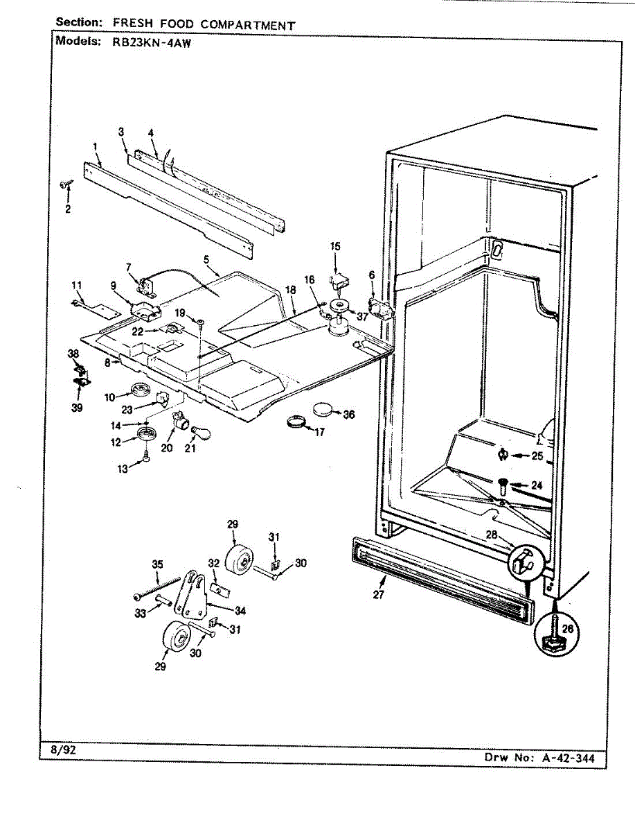 This factory screw secures appliance components to their mounting points. Replace missing, worn, or stripped hardware to restore a tight fit, proper alignment, and quieter operation across the affected assembly.