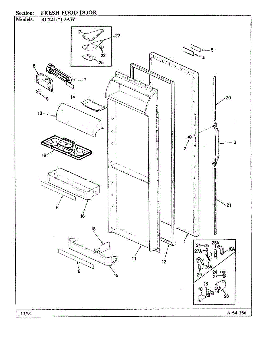 Parts for Magic Chef RC22LA-3AW / BS32C: 04 - Fresh Food Door Parts