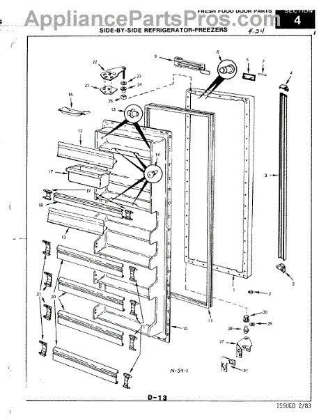 Parts for Magic Chef RNC20AA-3A / 3M51B: 04 - Fresh Food Door Parts