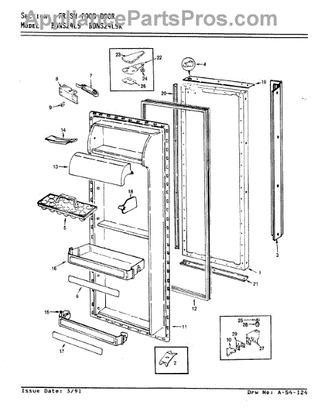 Parts for Maytag BDNS24L9 / BN92A: 04 - Fresh Food Door Parts