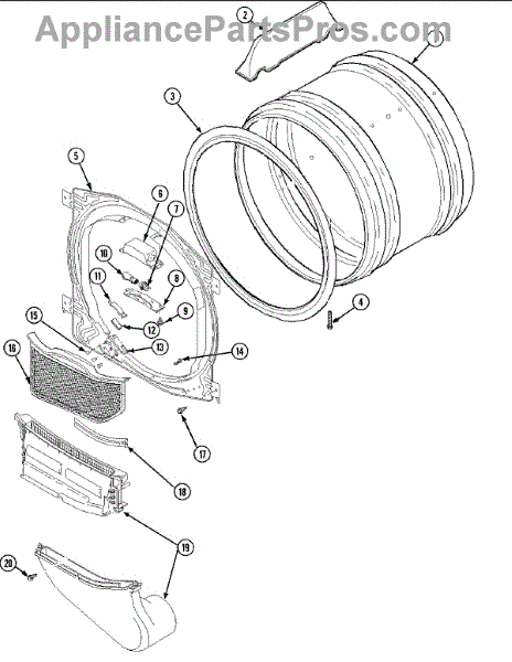 The Dryer Glide Felt Pad is an OEM part for Whirlpool dryers. It is located at the front of the dryer drum. It provides a smooth surface for the drum to glide on, reducing friction and allowing it to rotate freely. This helps to prevent excessive wear and noise during the drying cycle.