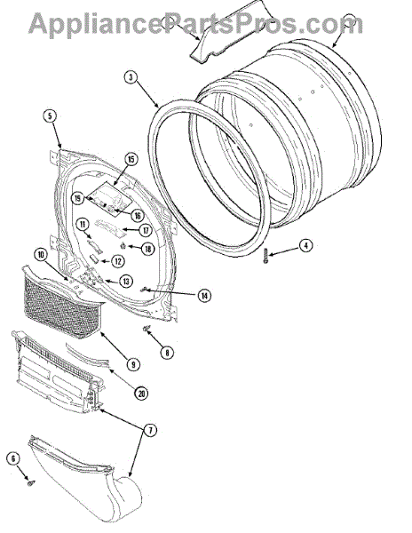 Parts for Maytag SDG515DAWW: 04 - Front Bulkhead, Air Duct & Cylinder Parts