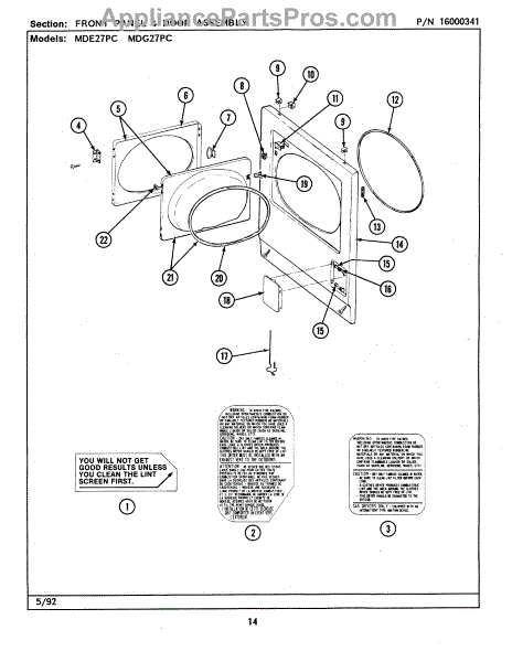 Parts for Maytag MDE27PCACL: 04 - Front Panel & Door Assembly Parts