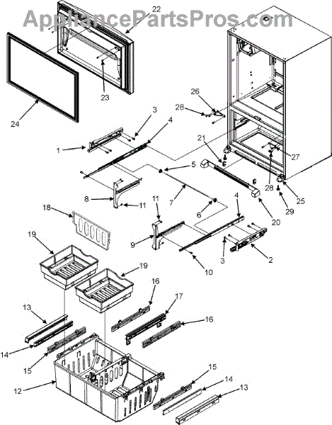This left-side slide bracket secures and guides a sliding assembly so drawers or components open smoothly and stay aligned. It replaces a worn or broken bracket to restore proper support and reduce binding or sagging. What it does: