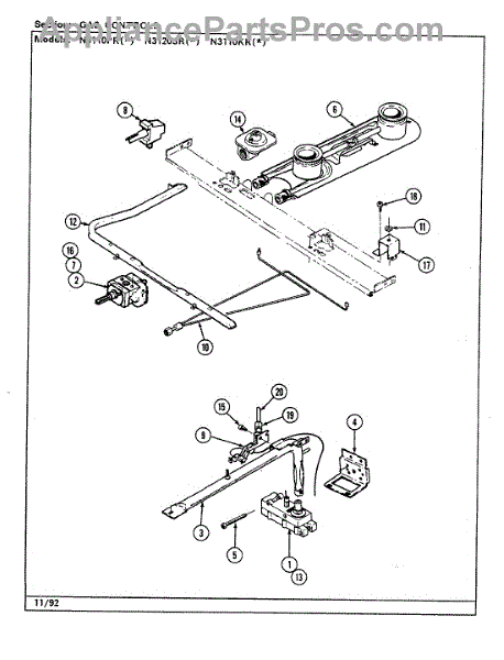 Parts for Norge N3110PRA: 04 - Gas Controls (N3110prx, N3120srx) Parts