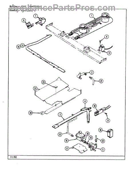 This oven gas valve controls the flow of gas to the oven burner. When functioning properly, it allows the burner to ignite and maintain a steady flame for consistent preheating and baking performance.