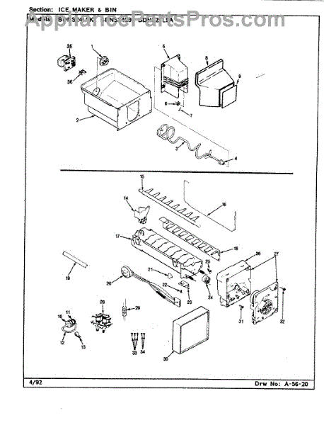 Parts for Maytag BDNS24L9 / BN91F: 04 - Ice Maker & Bin Parts