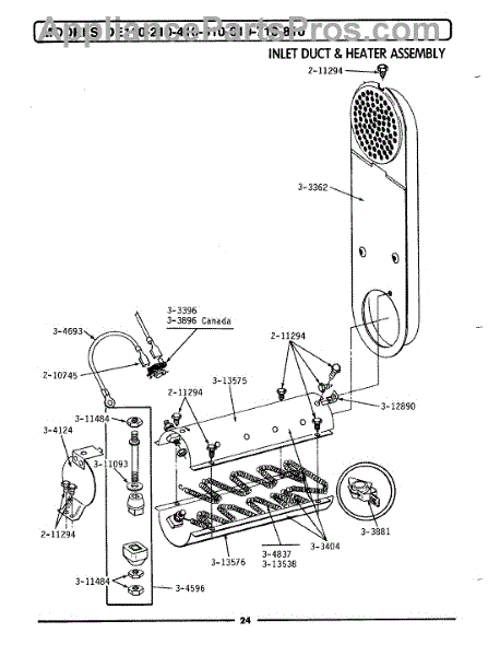 Parts for Maytag GDE510: 04 - Inlet Duct & Heater Assembly Parts