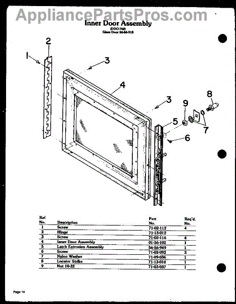 Parts for Amana DDO-762: 04 - Inner Door Assy Parts