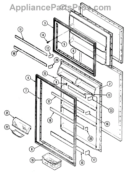This door bar shelf support end cap can be used on both the right and left hand on many Maytag refrigerator and freezer doors. Color: white. Measures about 1-1/2 inches high by 3 inches deep.
