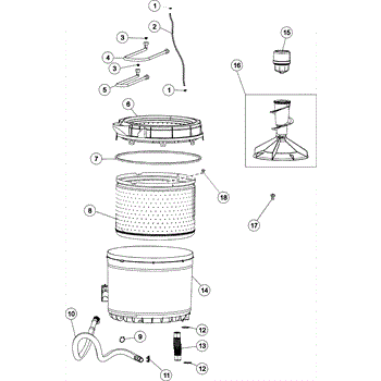 The Washer Tub to Pump Hose is an OEM part for Whirlpool washing machines. This hose connects the washer tub to the drain pump, facilitating the proper drainage of water from the tub during the wash and spin cycles.