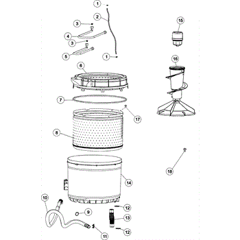 The Washer Tub to Pump Hose is an OEM part for Whirlpool washing machines. This hose connects the washer tub to the drain pump, facilitating the proper drainage of water from the tub during the wash and spin cycles.