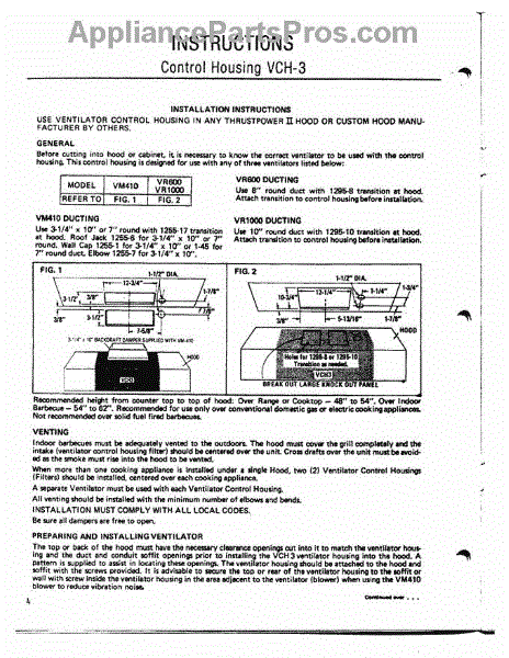 Parts for Thermador VCH-3: 04 - Instructions Parts