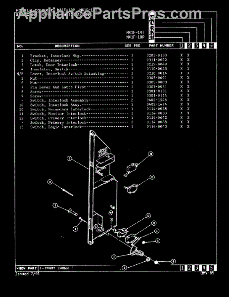 Parts for Magic Chef M41F-10P: 04 - Interlock Switch Assy. Parts