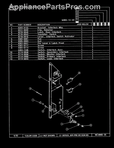 Parts for Magic Chef M40G-14-X9: 04 - Interlock Switches Parts