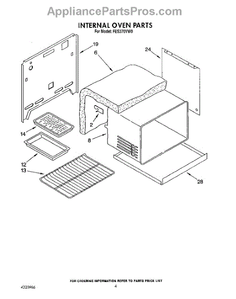 Parts for Whirlpool FES370VX0: 04 - Internal Oven Parts