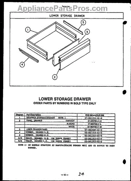 Parts for Amana RJS369: 04 - Lower Storage Drawer Parts