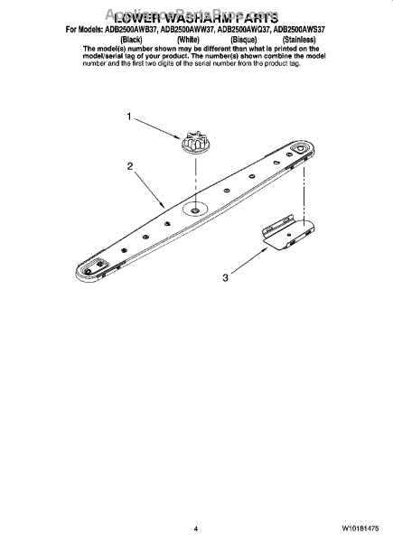 Parts for Maytag ADB2500AWS37: 04 - Lower Washarm Parts