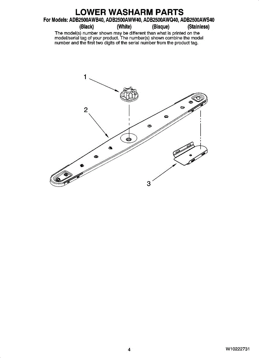 Parts for Maytag ADB2500AWW40: 04 - Lower Washarm Parts