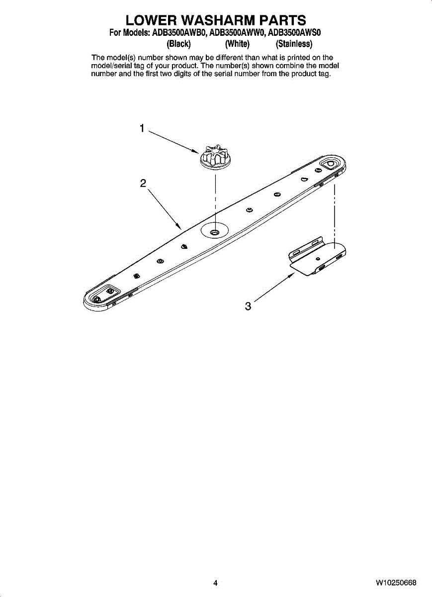 Parts for Maytag ADB3500AWW0: 04 - Lower Washarm Parts