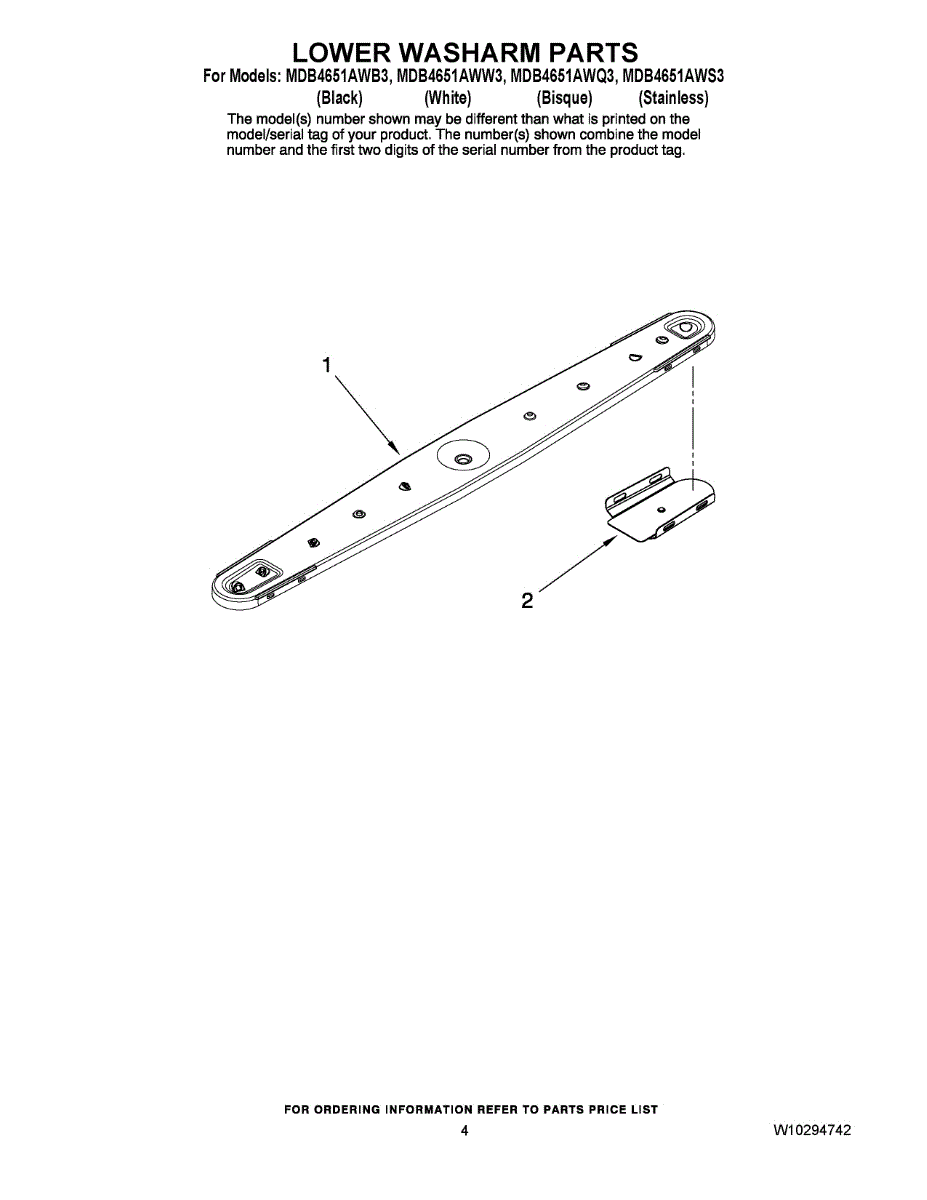 Parts for Maytag MDB4651AWQ3: 04 - Lower Washarm Parts