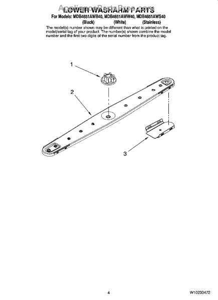 Parts for Maytag MDB4651AWS40: 04 - Lower Washarm Parts