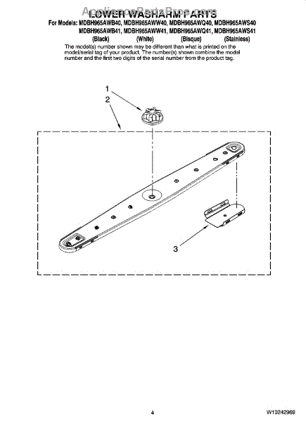 What's included: One lower wash arm. Install notes: