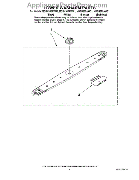 Parts for Maytag MDBH980AWB1: 04 - Lower Washarm Parts