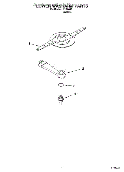 Parts for Whirlpool IPU98660: 04 - Lower Washarm Parts