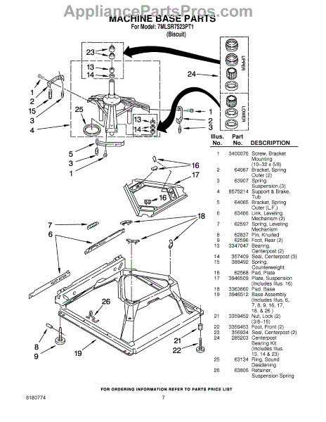 Parts for Whirlpool 7MLSR7523PT1: 04 - Machine Base Parts