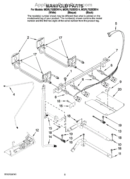 Parts for Maytag MGRL752BDW14: 04 - Manifold Parts