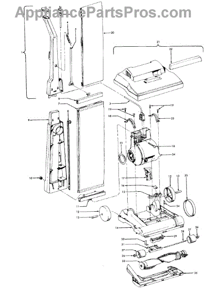 Parts for Hoover U4457: 04 - Motor, Handle, Mainbody, Outerbag, Hood Parts