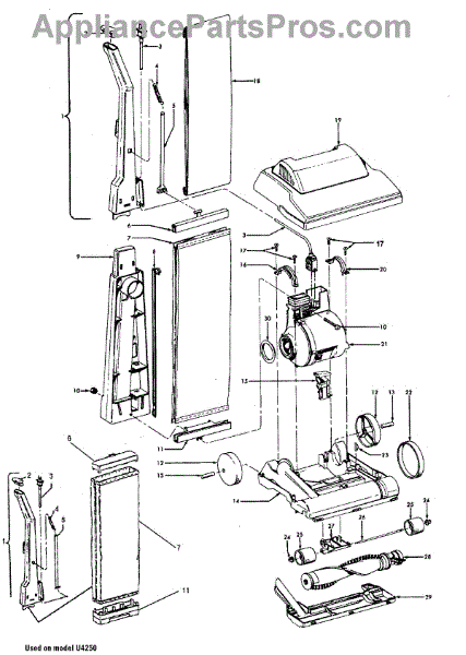 Parts for Hoover U4467970: 04 - Motor, Handle, Mainbody, Outerbag, Hood Parts