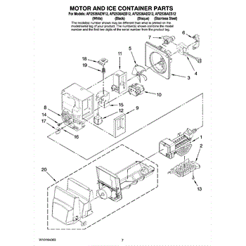 This ice container assembly stores ice in the freezer and interfaces with the dispenser to deliver cubed or crushed ice. Replacing a cracked or worn bin restores smooth, consistent ice dispensing performance.