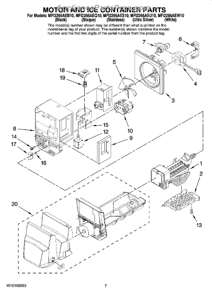 Parts for Maytag MFI2266AEW10: 04 - Motor And Ice Container Parts