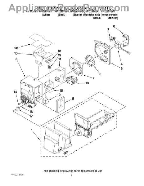 Parts for Maytag MFI2269VEA1: 04 - Motor And Ice Container Parts
