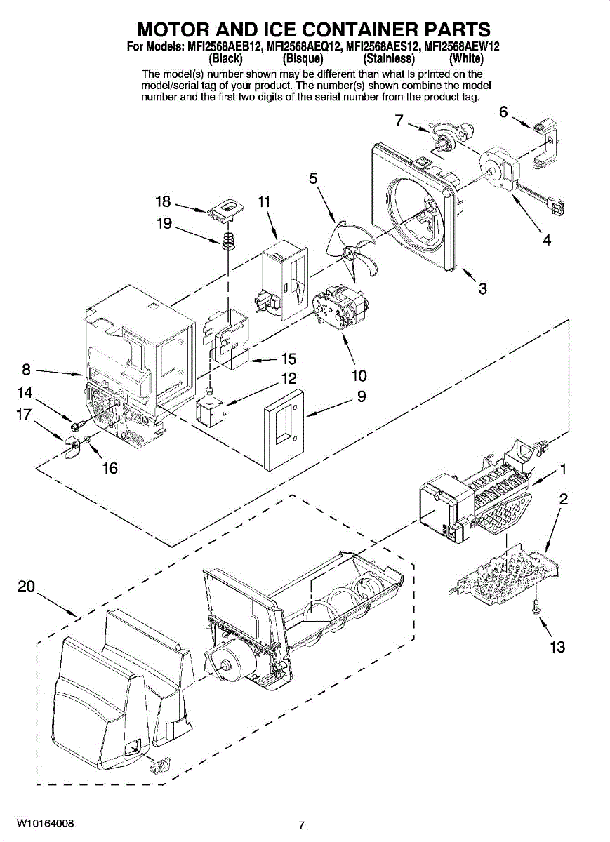This auger motor drives the ice-auger in the dispenser, turning the spiral to deliver ice from the bin to the door dispenser. Replacing a failed motor restores reliable ice delivery and stops auger-stall symptoms. What it does: