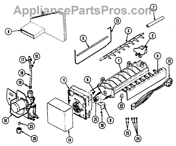 • Works with the ice maker's motor/gear assembly to advance cubes into the bin.